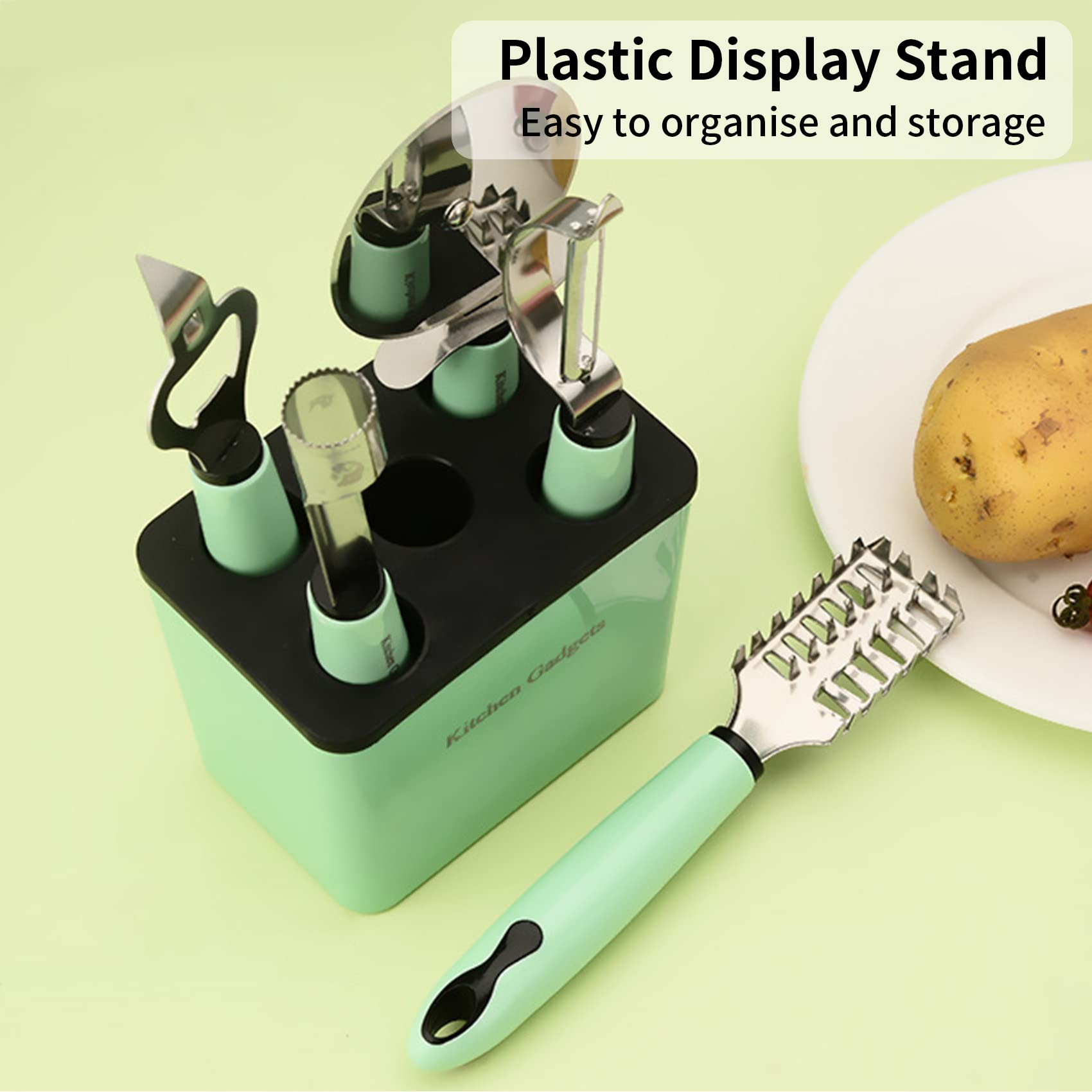 The tools feature comfortable, slip-resistant handles, while the sturdy storage block keeps each piece upright, accessible, and beautifully displayed. Available in vibrant colors like mint green and red, this set adds a fresh, contemporary touch to any kitchen décor.